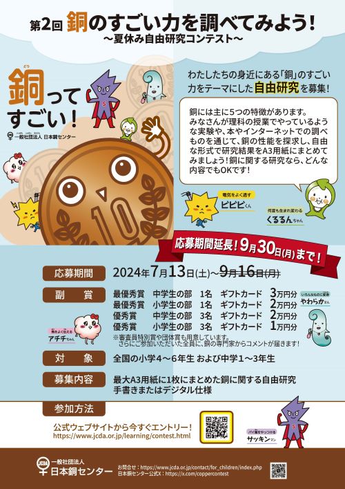 - 「第2回 銅のすごい力を調べてみよう!夏休み自由研究コンテスト」応募期間延長のお知らせ