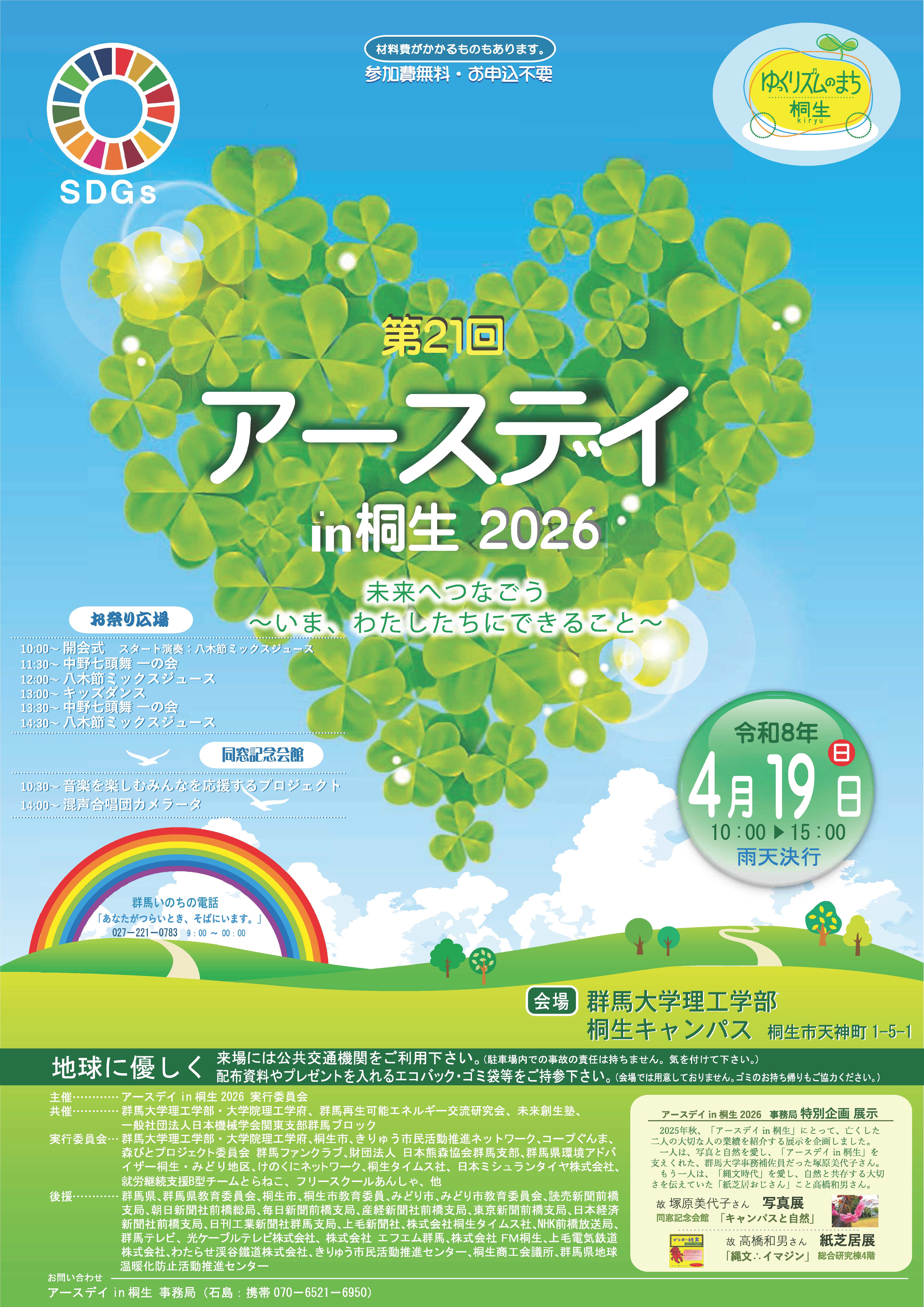 - 第21回 アースデイ in 桐生 2026に参加します。